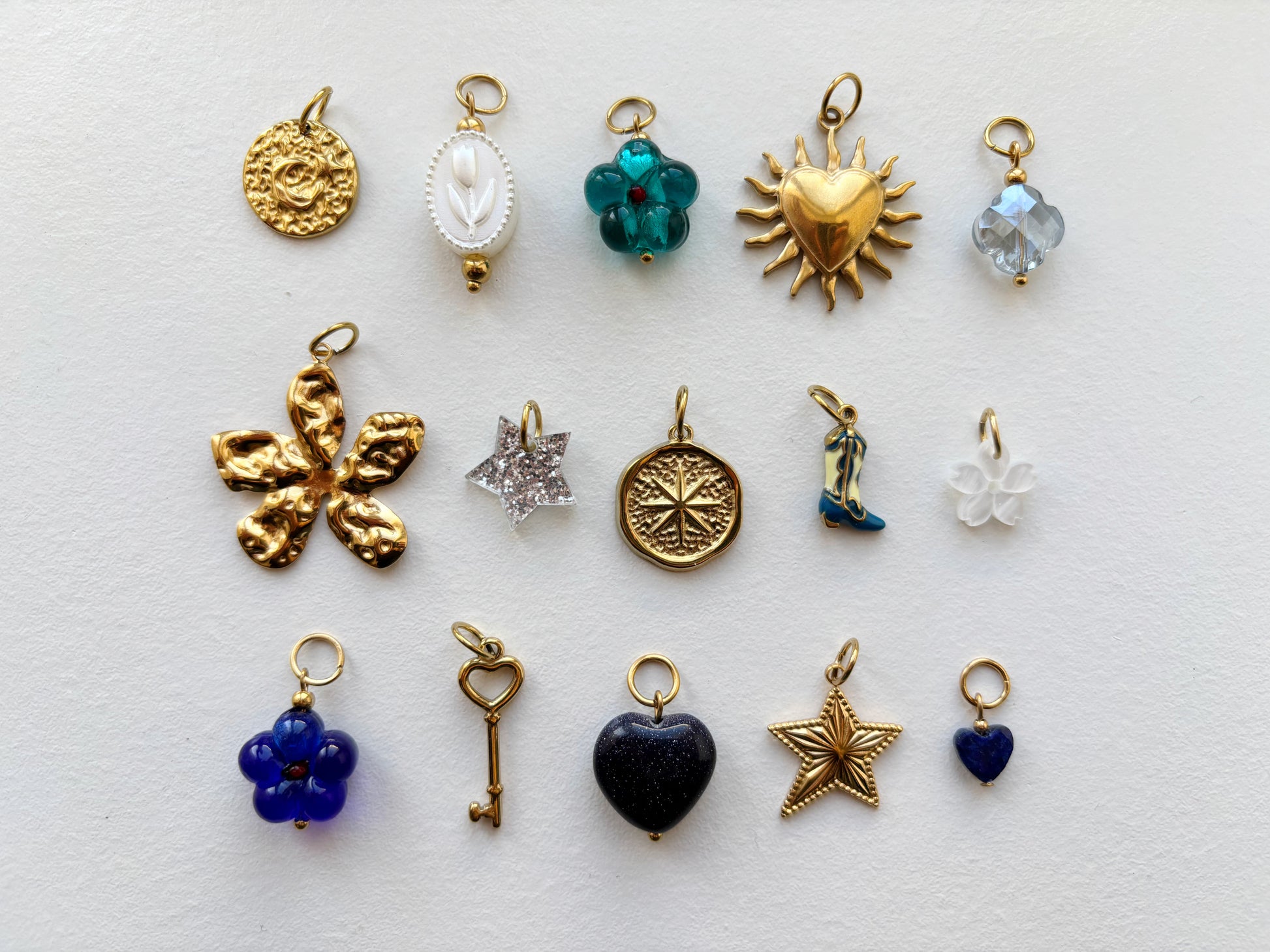• 1 paire de boucles d’oreilles créoles interchangeables avec deux charms