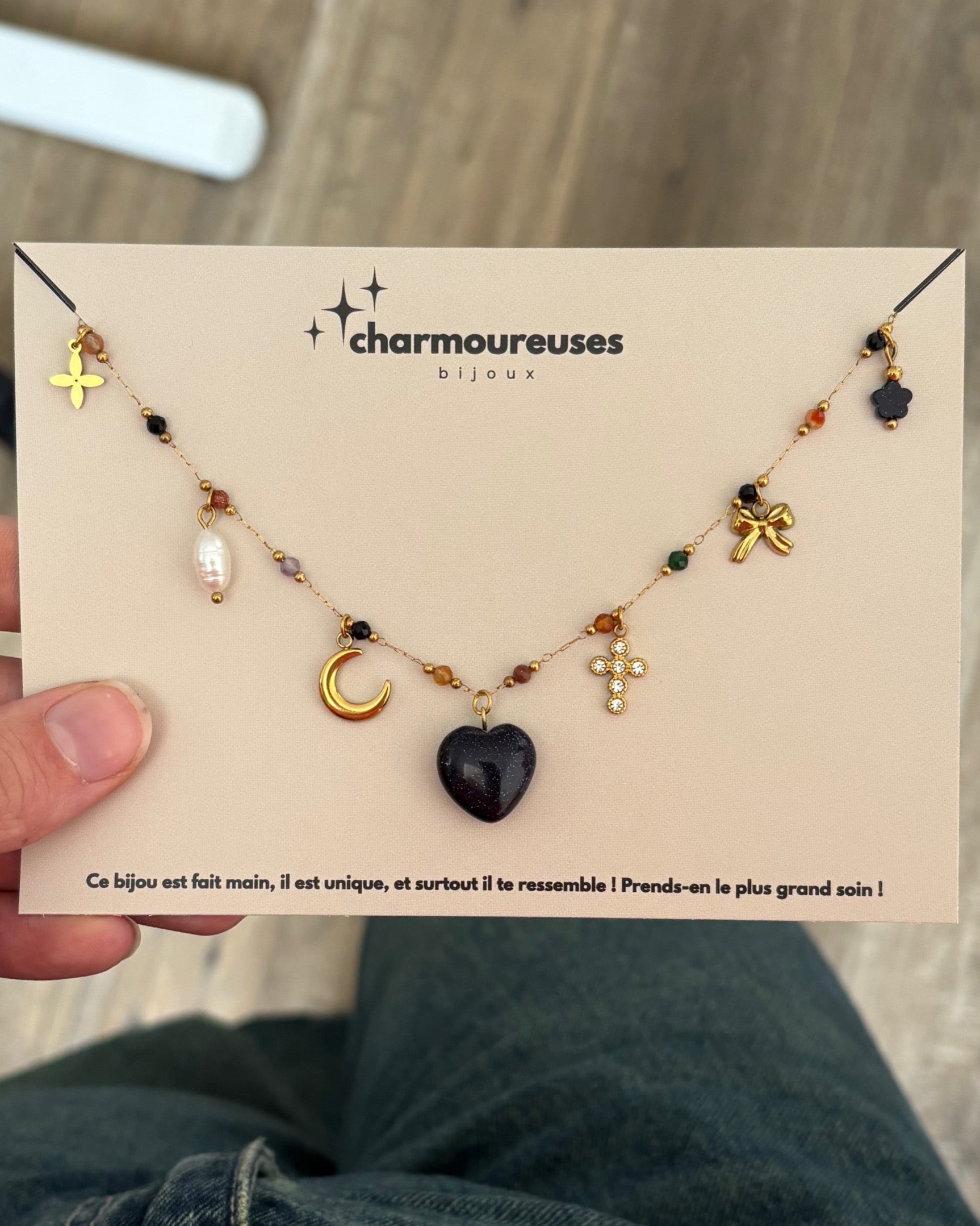 Collier composé de 7 charms, disponible en 1 exemplaire unique.