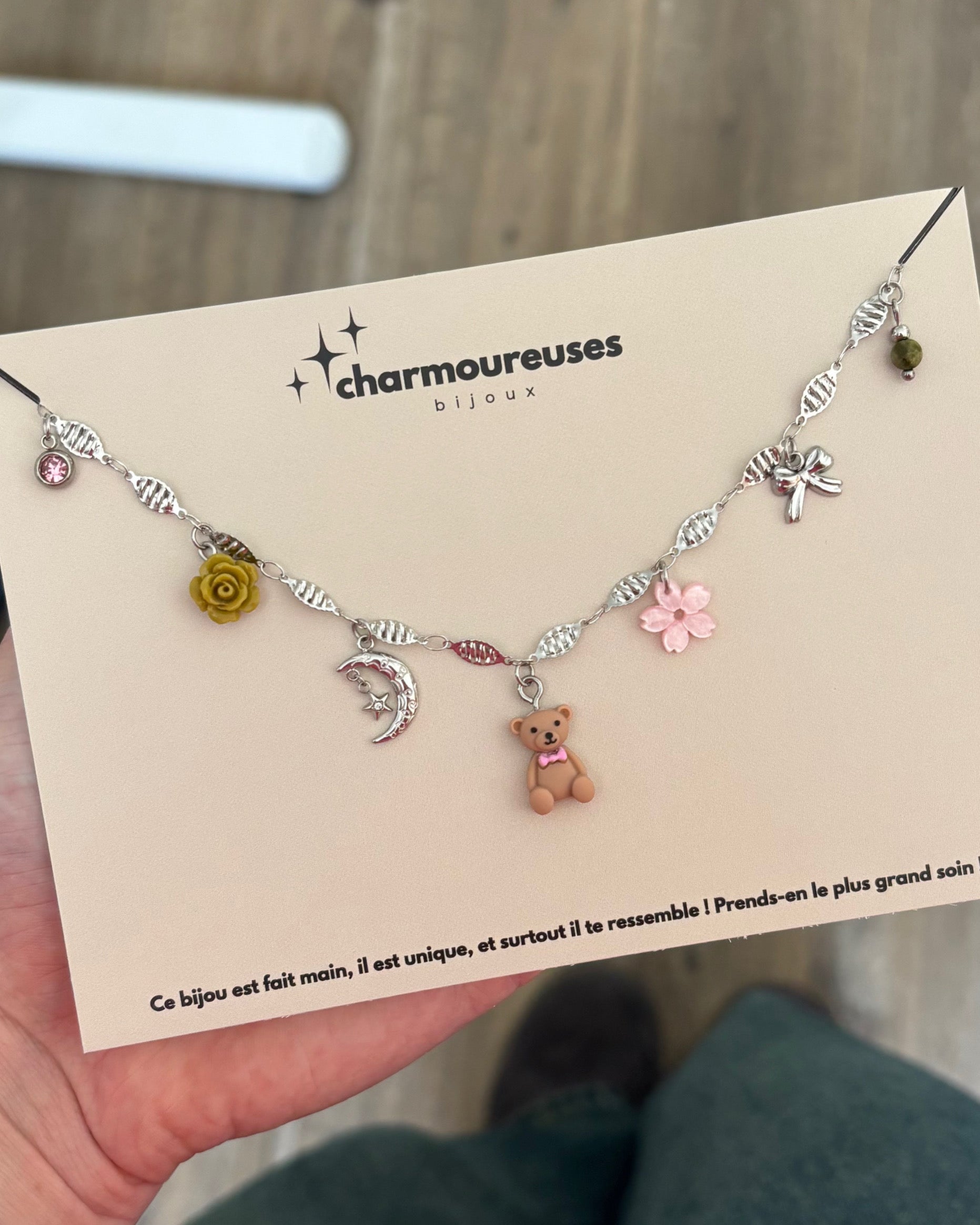 Collier composé de 7 charms, disponible en 1 exemplaire unique.