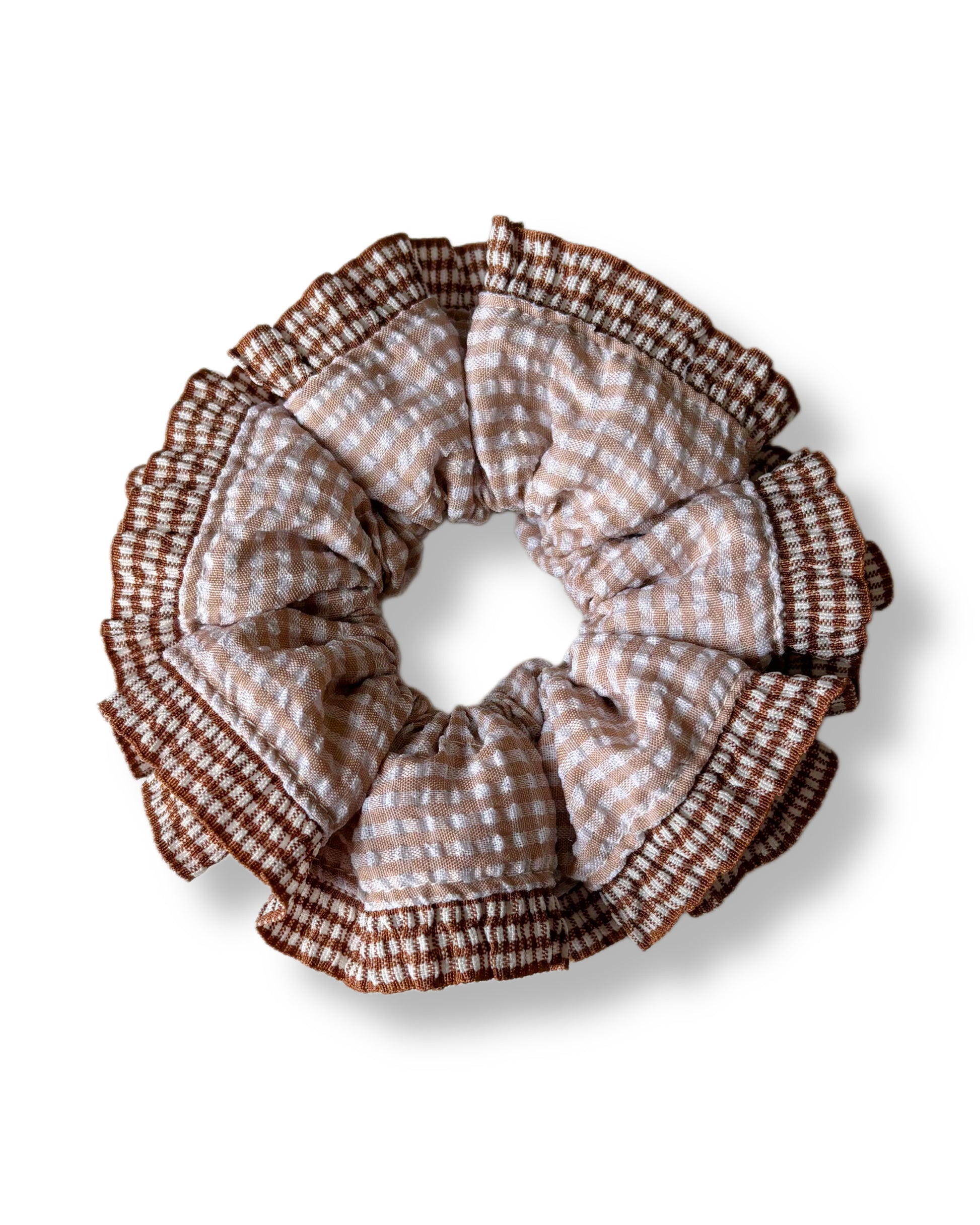 Grand chouchou à froufrous marron