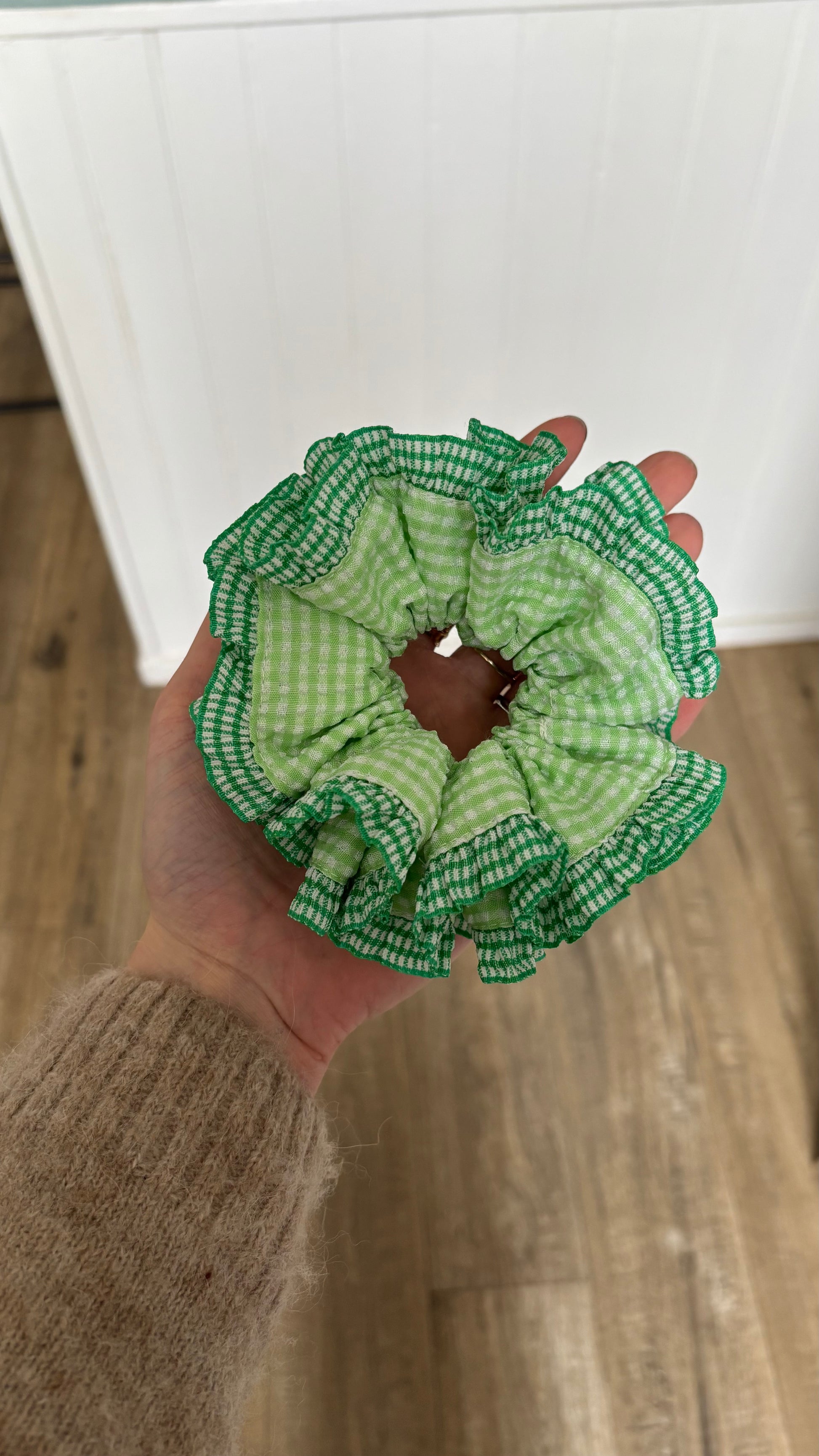 Grand chouchou à froufrous vert